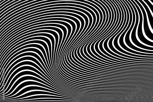 line, wavy, curve, vector, wave, surge, ripple, dark, movement, motion, illusion, three-dimensional, convex, stripes, streak, striped, op, optical, flexible, dynamic, effect, distortion, winding, bend, bent, twisting, art, graphic, design, modern, abstract, textured, texture, pattern, background, geometric, fancy, contrast, abstraction, black, white, bw, monochrome, decor, illustration