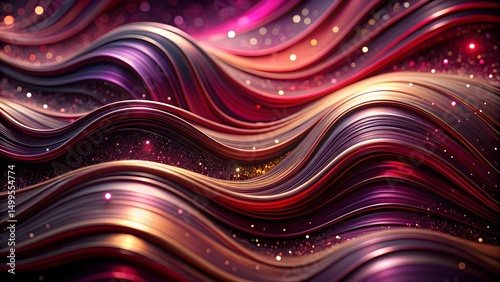 abstract, background, texture, wave, line, curve, metallic, shimmer, sparkle, glistering, particle, red, purple, pink, gold, orange, brown, dark, vibrant, colourful, dynamic, flowing, smooth, glossy, shiny, elegant, luxurious, design, pattern, illustration, digital, art, graphic, wallpaper, template, element, optical, overlay