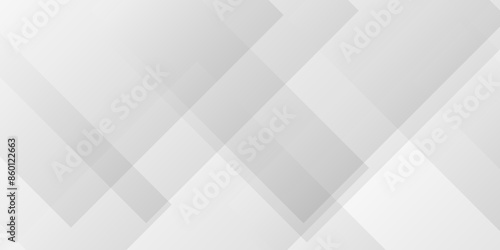 Abstract white and gray background design with layers of textured white transparent material in triangle and squares shapes. White color technology concept geometric line vector background.