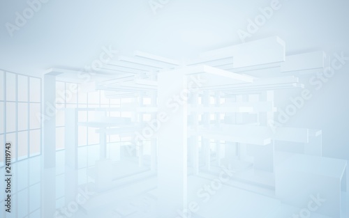Abstract white interior highlights future. Architectural background. 3D illustration and rendering
