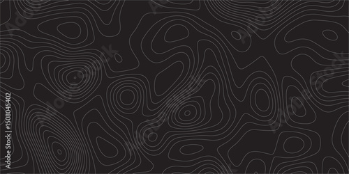 Abstract white on black background Topographic line map pattern. Contour elevation topographic and textured Background Modern design with black background with topographic wavy patted.