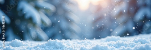 Abstract winter background with falling flakes, serene atmospheric conditions , misty mountains