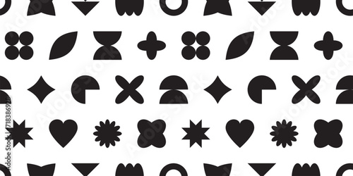 Abstract y2k shape seamless pattern, retro background, black and white elements, minimal geometry print. Creative vector illustration