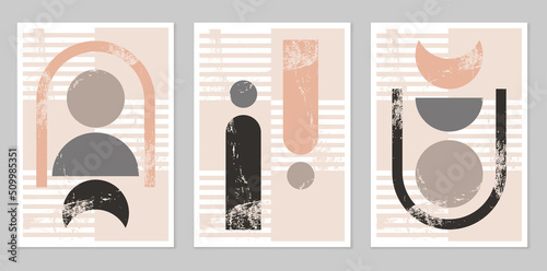Abstraction. A set of abstract graphic collections. Modern aesthetic background with geometric shapes. Boho-style wall decor. Organic form. Composition of simple figures.