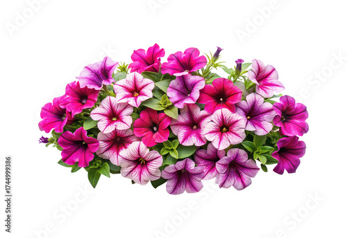 petunia, flower, floral, pink, purple, bloom, blossom, vibrant, colourful, flower petals, leaf, greenery, garden, nature, isolated, white background, plant, annual, gardening, landscaping, summer flowers, spring flower, decorative, ornamental, horticulture, botanical, flora, flowering plant, garden design, closeup, detail, bright, beauty