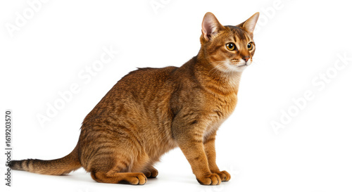 cat, abyssinian, felino, pet, animal, mammal, domestic, breed, pedigree, ruddy, brown, fur, cute, adorable, portrait, sitting, isolated, white, background, studio, shot, looking, alert, attentive, elegant, graceful, whisker, eye, ear, tail, paw, carnivore, hunter, companion, friends, purebred, short hair, egyptian, kitten, young, adult, healthy, clean, groomed, posture, pose, curious, watchful
