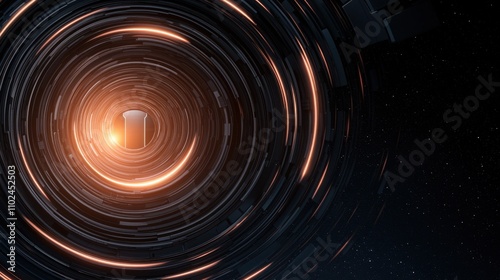 Access control permissions and encryption, A swirling vortex of light and energy, suggesting motion through space, with a glowing center and concentric rings creating a dynamic cosmic effect.