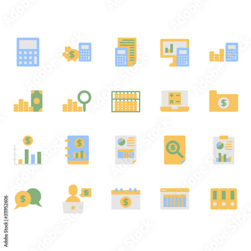 Accounting related icon and symbol set in flat design