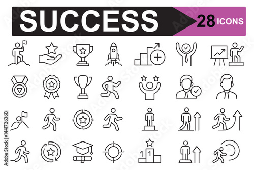 success, icon, business, goal, achievement, strategy, personal, growth, triumph, illustration, vector, design, graphic, medal, trophy, flag, rocket, stair, chart, award, target, winner, leader, progress, mountain, star, cup, man, presentation, step, top, graduate, development, victory, expertise, work, marketing, organisation, finance