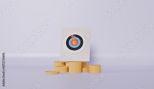 Achievement strategy with the bow stack coins archer target planning vision business financial growth investment education concep