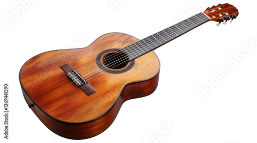 Acoustic Guitar: Capture the natural beauty of an acoustic guitar, its wooden body glistening under the light, inviting viewers to a melody of musical inspiration.