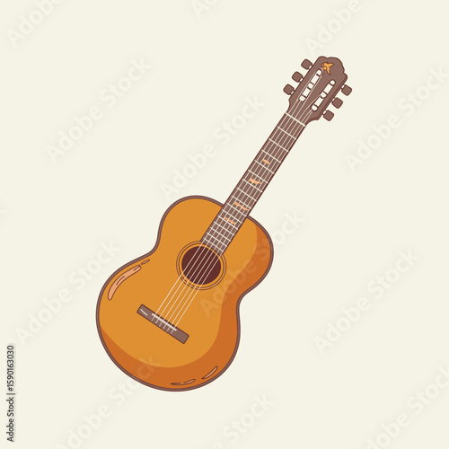 guitar, acoustic guitar, musical instrument, string instrument, music, instrument, sound, melody, harmony, song, classical music, country music, rock and roll, musician, performer, artist, entertainment, leisure, hobby, vintage, retro, illustration, drawing, vector, icon, clip art, isolated, background, studio, warm colors, brown, wood