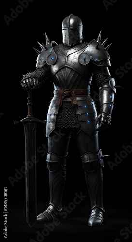 Action figure warrior with cool armor isolated black background