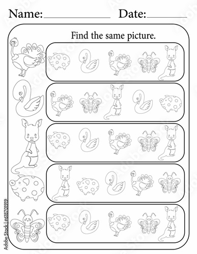 Activity sheet for Kids | Kindergarten Activity Worksheets for Kids | Find the Same Animal