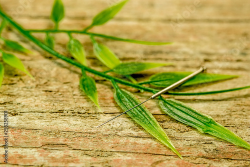 acupuncture needle with bamboo branch