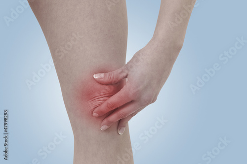knee, sprain, human finger, pain, cramp, touching, stretching, human muscle, physical injury, uncomfortable, disease, inflammation, arthritis, rheumatism, rheumatoid arthritis, physical therapy, massaging, missy, one person, anatomy, red, blue, isolated on white, cut-out