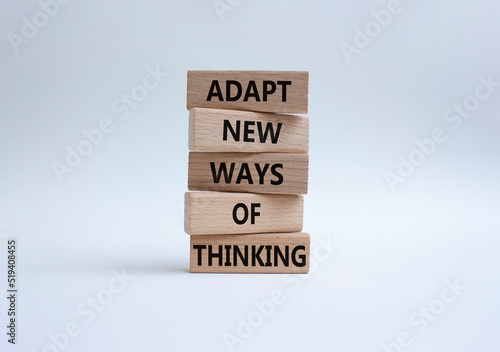 Adapt new ways of thinking symbol. Wooden blocks with words Adapt new ways of thinking. Beautiful white background. Business and Adapt new ways of thinking concept. Copy space.