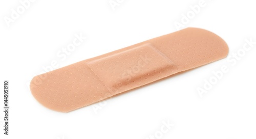 bandage, band-aid, in plaster, first aid, medicals, health, protection, isolated, white background, studio shot, still life, closeup, macro, sterile, single, object, beige, fabric, flexible, adhesive, care, treatment, cut, injury, health care, medicine, emergency, support, dressing, antiseptic, clean, hygiene, pharmacy, chemist's shop, product, rectangular, disrobed, pad, absorbent, non-stick