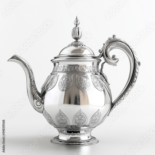 Admire the Ornate Patterns on an Elegant Silver Teapot