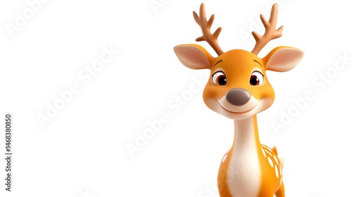 cervid, cartoon, three-dimensional, spot, adorable, animal, character, animation, children, illustration, graphic, design, cute, white, background, vector, art, friendly, mascot, education, storybook, comic, render, modern, isolated, creative, whimsical, childhood, game, avatar, print, poster, decor, childcare center, joyful, happy, smile, expression, entertainment, media, merchandise, fun, playful
