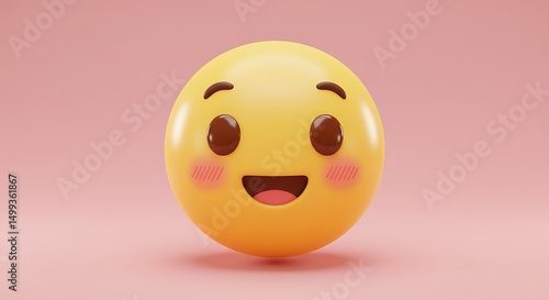 Adorable 3D emoji with open mouth and pink cheeks