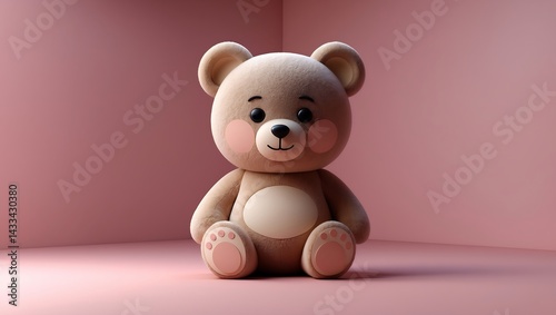 Adorable 3D Render of a Sitting Teddy Bear in a Pink Room