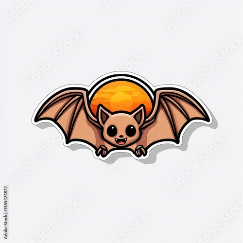 bat, cartoon, cute, adorable, animal, mammal, wing, flying, sunset, sunrise, night, darkness, halloween, gothic, skittish, mystical, fantasy, vector, illustration, graphic, design, sticker, decal, emblem, logotype, mascot, character, wildlife, nature, nocturnal, creature, funny, happy, cheerful, orange, brown, shadow, silhouette, art, digital artwork, printable, children, children, children, baby, toddler