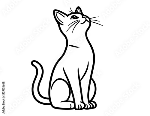 Adorable Cartoon Cat Illustration Line Art Drawing of a Sitting Feline