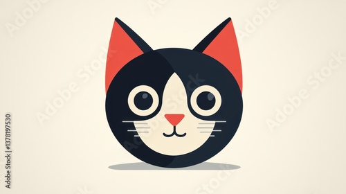 Adorable Cartoon Cat with Red Ears and Expressive Eyes Perfect for Kids Content Greeting Car