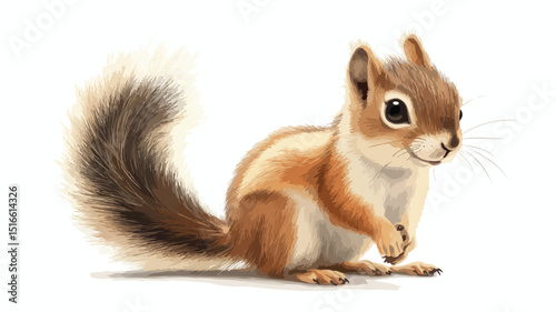 cartoon, cute, squirrel, posing, white, vector, illustration, animal, character, playful, cheerful, fun, happy, mascot, wildlife, whisker, tail, furry, small, rodent, curious, charming, friendly, nature, forest, mammal, nut, park, isolated, design, art, adorable, sweet, joyful, children, children, drawing, happiness