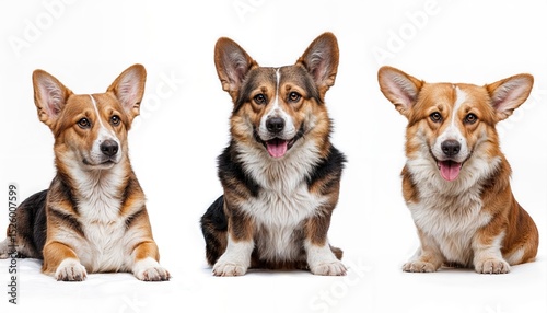 Adorable Corgi Portraits on White Backdrop A Bundle of Joy Sitting, Lying and Posing Perfection