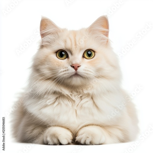 Adorable Cream Persian Cat Portrait Against White Background