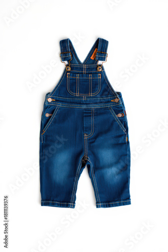 Adorable Denim Overalls for Infants and Toddlers, Perfect for Playtime and Everyday Wear, Featuring Adjustable Straps and Pocket Details on a White Backdrop