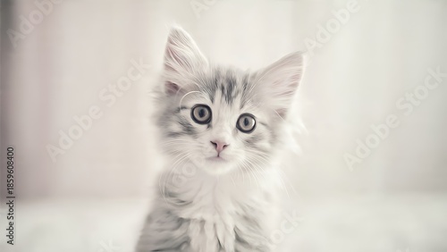 Adorable Fluffy Kitten Stares with Wide Eyes