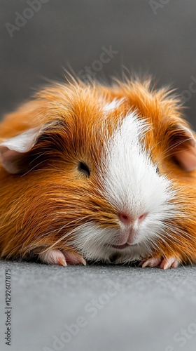 Adorable ginger guinea pig resting on a grey surface