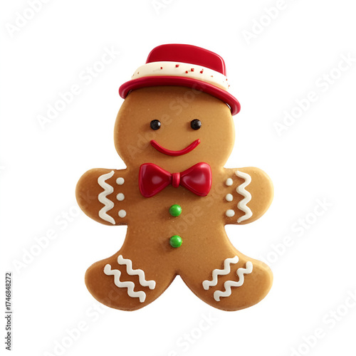 Adorable gingerbread man with a festive hat and cheerful decorations, perfect for holiday baking and celebrations.