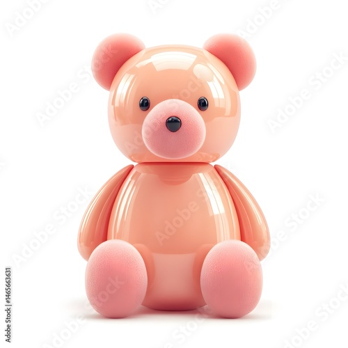 Adorable glossy pastel peach 3D plush teddy bear with velvety finish perfect for nursery décor