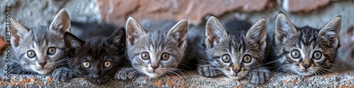 kitten, cat, cute, adorable, fluffy, pet, animal, grey, black, young, small, mammal, felino, domestic, paw, whisker, eye, face, closeup, portrait, group, family, sibling, friends, playful, sweet, charming, lovely, precious, delightful, furry, baby, tiny, innocent, beautiful, photogenic, wildlife, nature