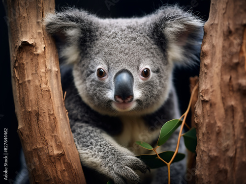 Adorable koala perched on eucalyptus tree branch in Australian habitat