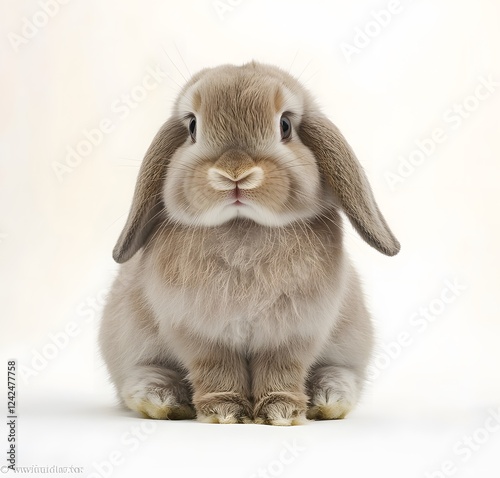 rabbit, rabbit, lop, eared, fluffy, fur, cute, adorable, pet, animal, white, background, sitting, pose, young, small, brown, beige, grey, soft, sweet, innocent, gentle, calm, peaceful, domestic, house, home, petting, lovely, charming, precious, baby, kitten, mammal, creature, wildlife, ear, nose, eye, paw, face