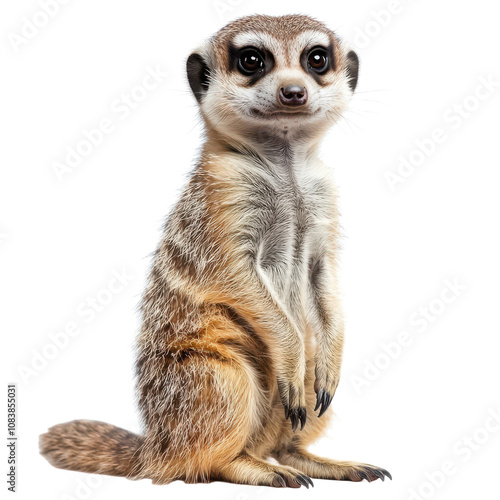 isolated on white, adorable, wildlife, suricate, african, sitting, small, furry, mammal, cute, wild, animal, image, photo, close, white, portrait, up, conservation, species, creature, isolated, desert, endangered, studio, shot, zoo, background, nature