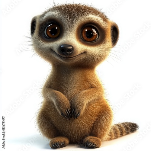 suricate, animal, cute, adorable, mammal, wildlife, portrait, eye, furry, brown, small, wild, zoo, nature, happy, smiling, playful, curious, standing, alert, looking, watching, funny, cartoon, character, isolated, white, background, studio, pet, creature, animal portrait, expressive, big eye, animal welfare, conservation, digital artwork, illustration, design, animal rights, positive, joy