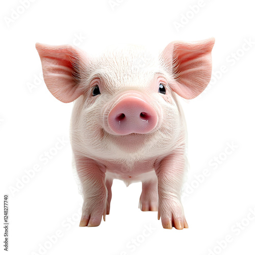 Adorable pink piglet cute farm animal portrait studio shot isolated transparent background