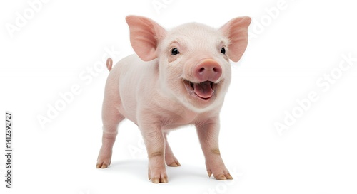 baby pig, pig, baby pig, animal, cute, adorable, pink, white, portrait, isolated, standing, happy, joyful, expression, studio photography, farm animal