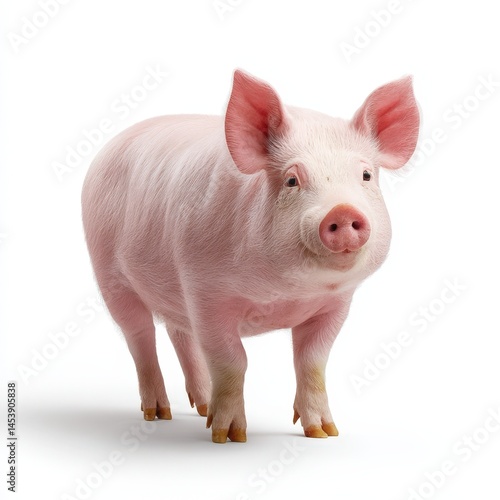 Adorable Pink Piglet Standing on White Background Farm Animal Portrait