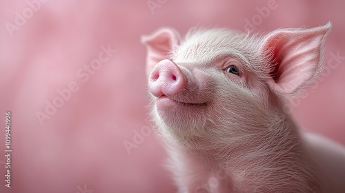 Adorable Pink Piglet with Curious Expression on Pink Background
