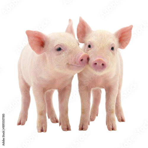 baby pig, pig, swine, pink, cute, adorable, animal, farm, farm animal, mammal, young, small, standing, side by side, white background, isolated, clean, simple, sweet, innocent, pure, commercial, marketing, editorial, website, banner, presentation, background, farm fresh, agricultural, rural, nature, wildlife, zoology, biology