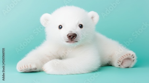 Adorable Polar Bear Cub Relaxing on Teal Background
