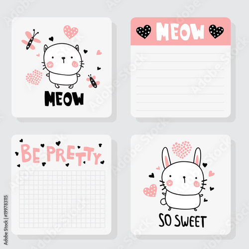 cute, vector, printable, cat, template, design, background, hand, drawn, illustration, set, print, card, children, note, cartoon, animal, baby, paper, doodle, collection, page, pet, poster, scrapbook, kitten, party, invitation, pattern, notebook, notepad, rabbit, rabbit, easter, graphic, birthday, shower, children, greeting, postcard, album, flier, cat, organiser, journal, beauty, lettering, planner, sticker, love