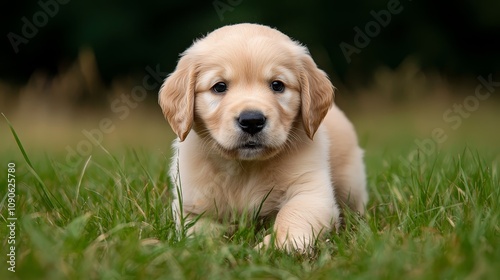 Adorable puppy enjoys relaxing moment in the lush green grass